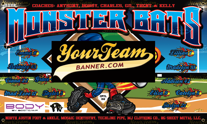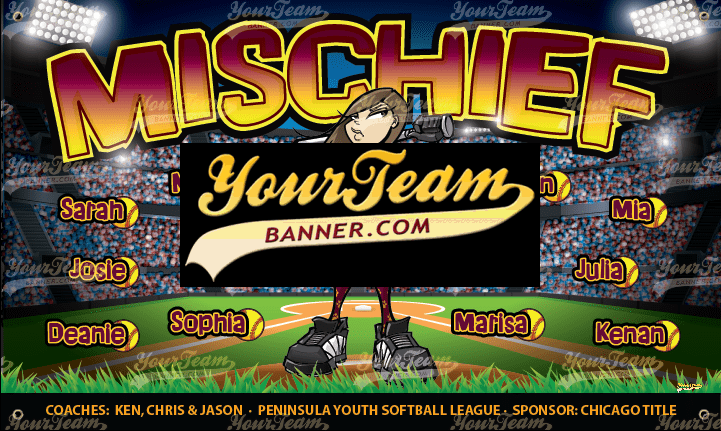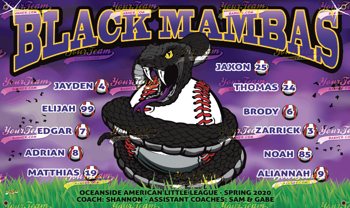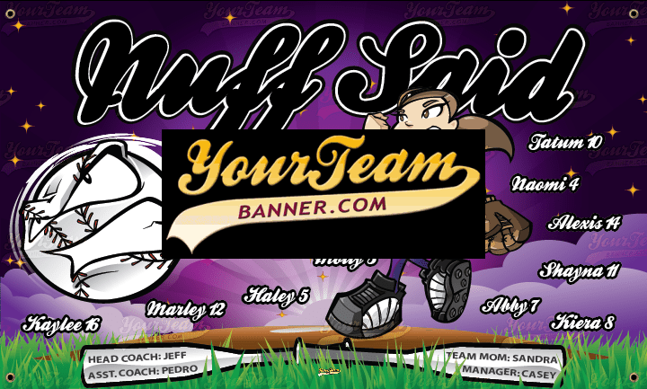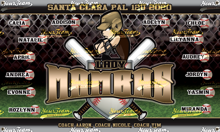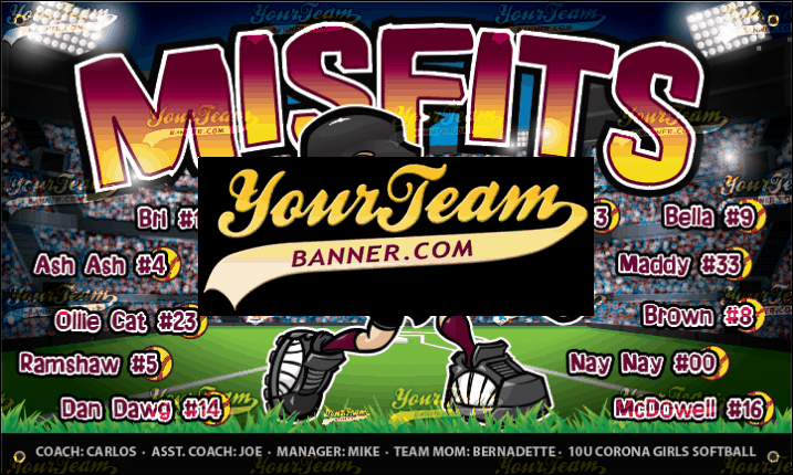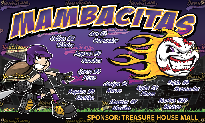 Softball Team Banner Samples Softball Team Banners for Recreational, Competitive, Travel & Leagues Search Team Name Mambas, Black - 1004 Mambas, Black - 1005 Mambas, Lady - 1006 Mambas, Lady - 1007 Mambas, Lady - 1008 Magic - 1009 Magic, Pink - 1010 Mermaids - 1015 Mischief - 1020 Misfits - 1021 Miners, Gold - 1025 Monster Bats - 1030 Mutiny - 1040 Nuff Said - 1050 Orange Crush - 1060 « ‹ of 16 › »