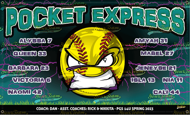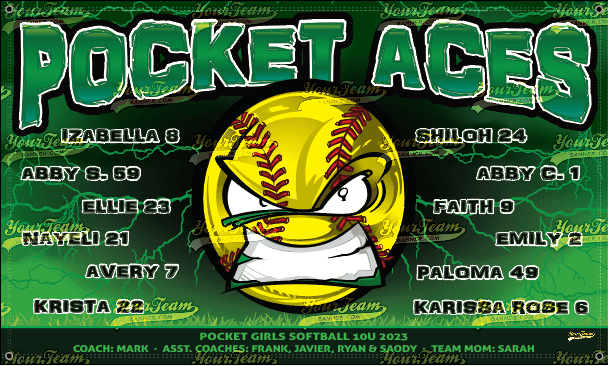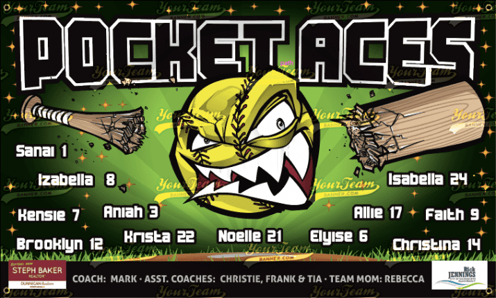Softball Team Banner Samples Softball Team Banners for Recreational, Competitive, Travel & Leagues Search Team Name Panthers, Lady - 1116 Panthers, Purple - 1124 Poison - 1129 Pink Piranhas - 1130 Pocket Aces - 1131 Pocket Protectors - 1149 Pocket Aces - 1133 Pocket Express - 1134 Pop Rocks - 1150 Pixies, Pink - 1160 Play Ball - 1170 Pride - 1180 Purple Haze - 1190 Pirates - 1200 Pirates - 1201 « ‹ of 16 › »