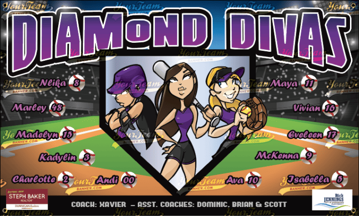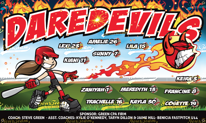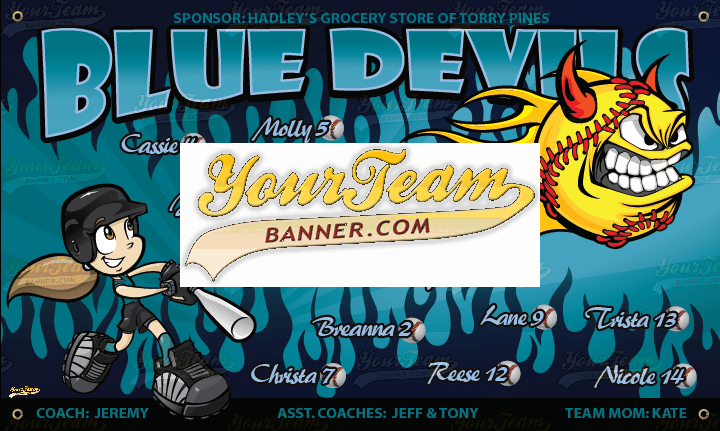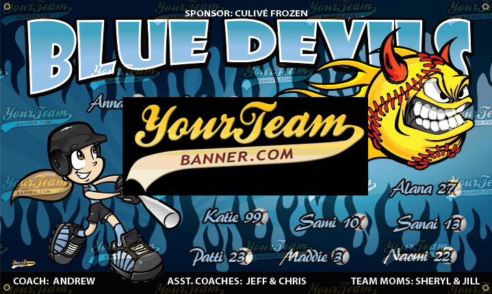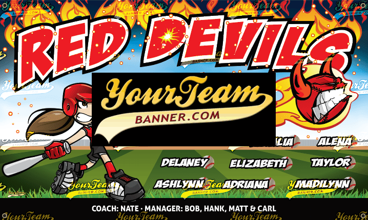 Softball Team Banner Samples Softball Team Banners for Recreational, Competitive, Travel & Leagues Search Team Name Crushers - 571 Dare Devils - 575 Destroyers - 590 Devils, Blue - 600 Devils, Blue - 601 Devils, Blue - 602 Devils, Red - 605 Devils, Sun - 606 Dominators- 608 Diamonds - 610 Diamond Girls - 611 Diamond Girls - 612 Diamond Divas - 613 Diamond Divas - 614 Diamonds, Blue - 615 « ‹ of 16 › »