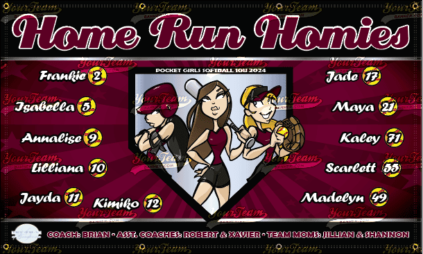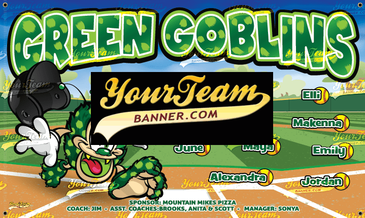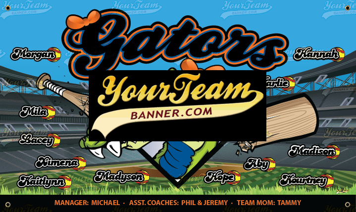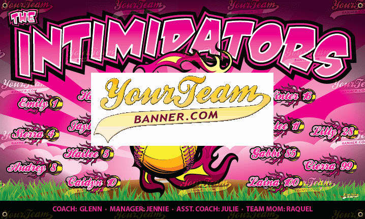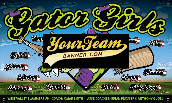 Softball Team Banner Samples Softball Team Banners for Recreational, Competitive, Travel & Leagues Search Team Name Gators - 681 Gators - 682 Gator Girls - 690 Gator Girls - 691 Lady Gators - 700 Glitter Girls - 710 Glitter Girls - 711 Glitter Hitters - 720 Glow Getters - 721 Green Goblins - 725 Hawks, Desert - 730 Home Run Homies - 740 Hot Stuff - 750 Hot Shots - 760 Intimidators - 770 « ‹ of 16 › »