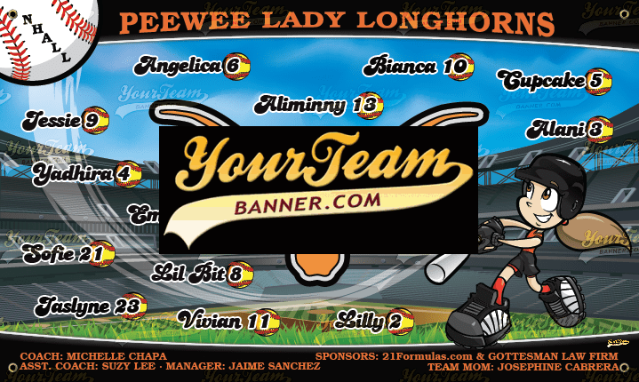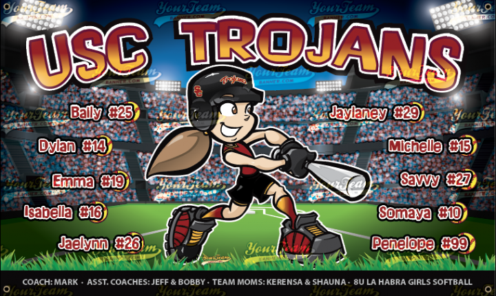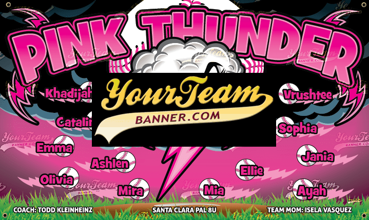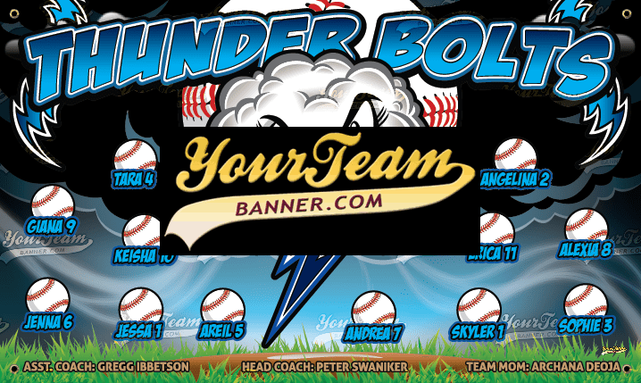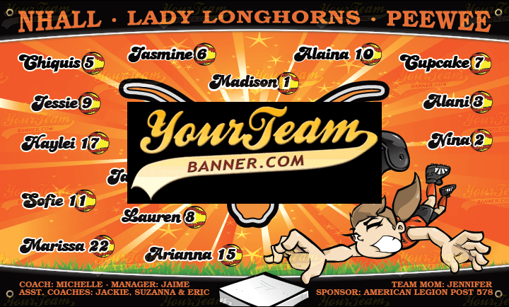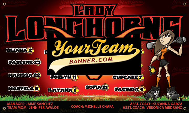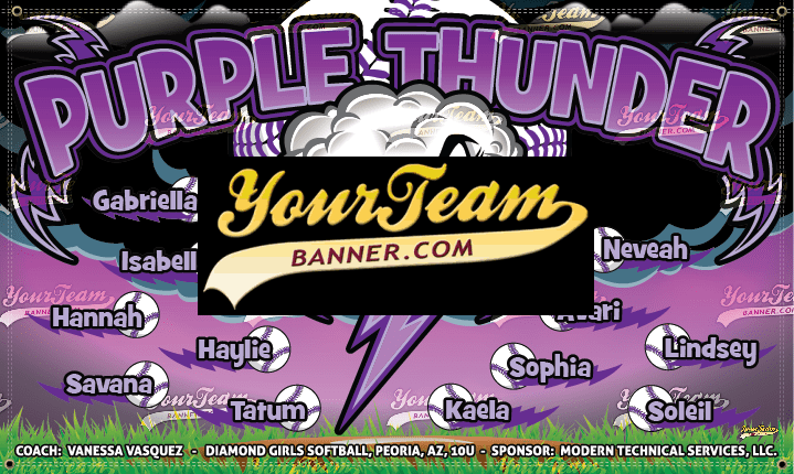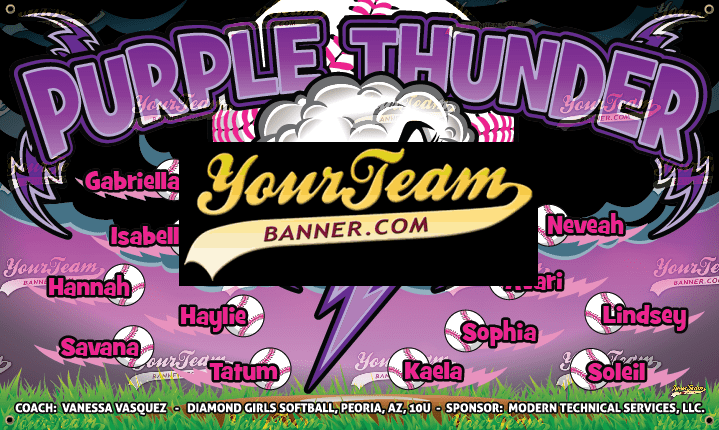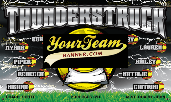 Softball Team Banner Samples Softball Team Banners for Recreational, Competitive, Travel & Leagues Search Team Name Thunder, Pink - 930 Thunder, Purple - 940 Thunder, Purple - 941 Thunder, Purple - 942 Thunder, Royal - 949 Thunder Bolts - 950 Thunderstruck - 960 Thunderstruck - 961 Trojans, USC - 970 Lady Longhorns - 981 Lady Longhorns - 982 Lady Longhorns, Photo - 983 Longhorns, Lady - 985 Lucky Charms - 990 Mighty M&M's - 1000 « ‹ of 16 › »